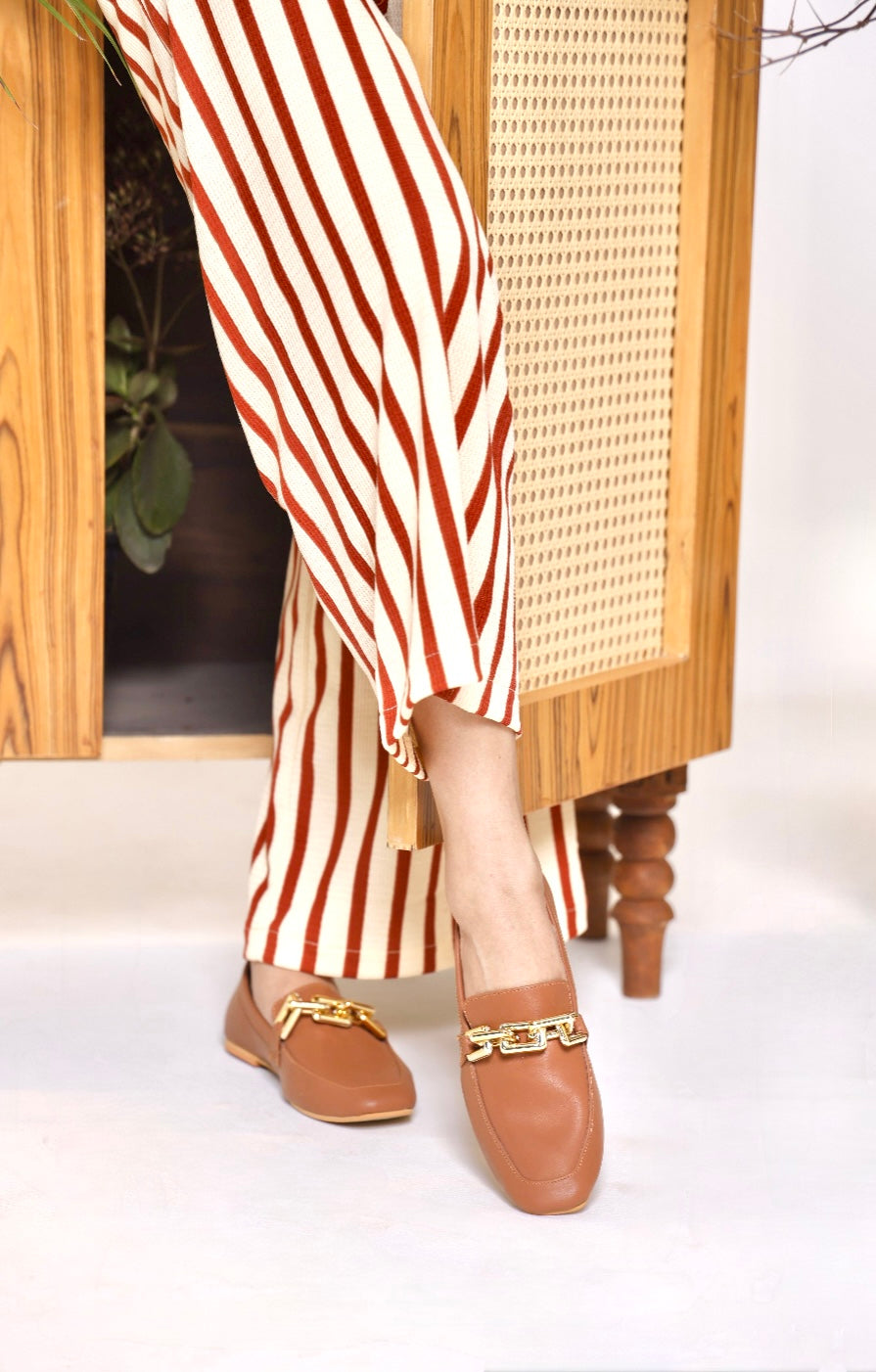 Step into the spotlight with the Chain Loafer, where every stride feels like an entrance and every look is applause-worthy. Made with vegan leather with cushioning on the sole. Has a beautiful chain gold plated detail on top.