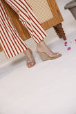 This platform was created for pure comfort and long term wear. It's 3mm cushioning with clear strap so it'll go with everything.
