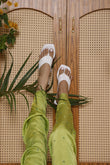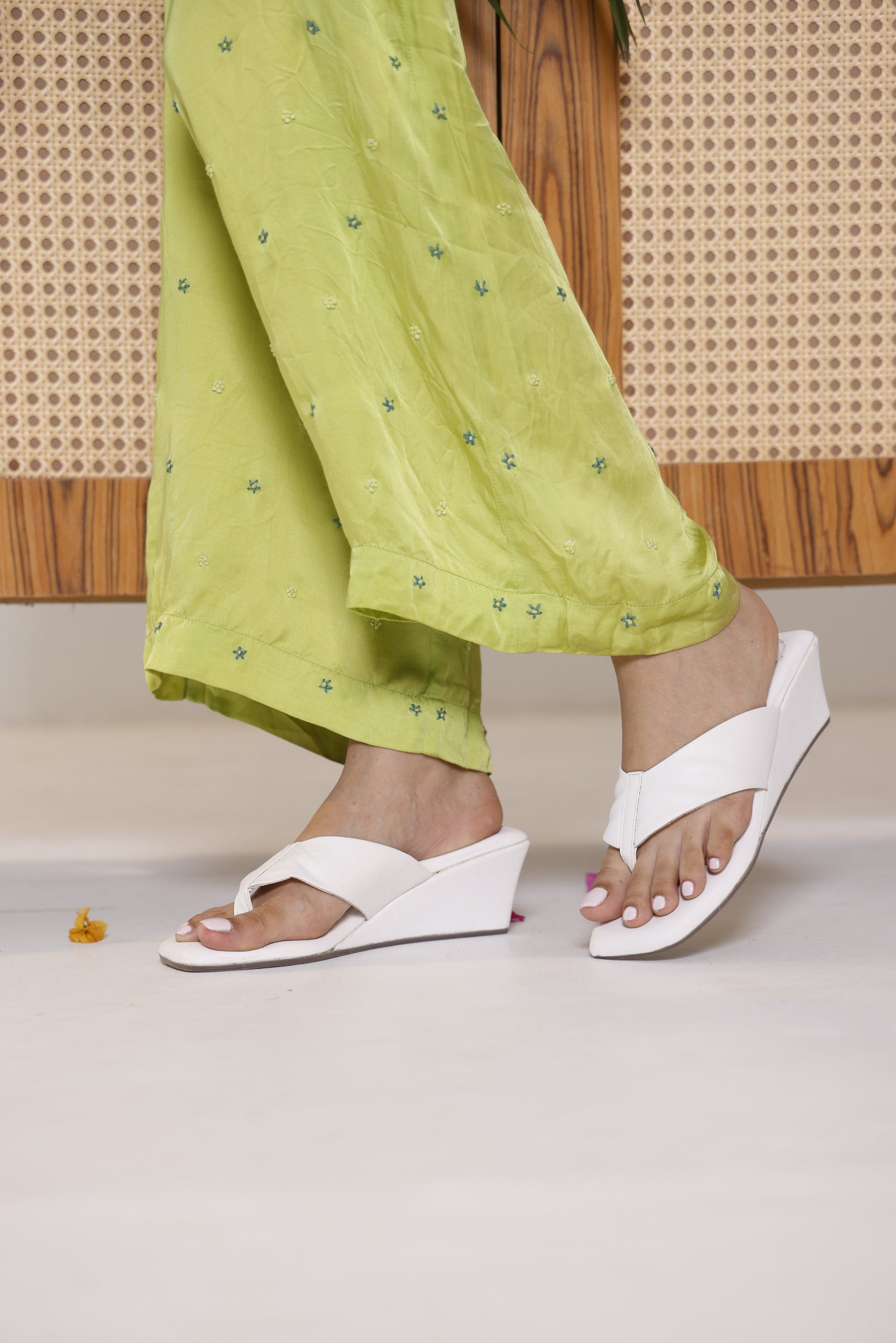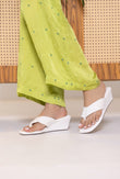 Goes with everything and yet stand out. The white platform has 2 inch heel and can elevate a everyday look in a second.